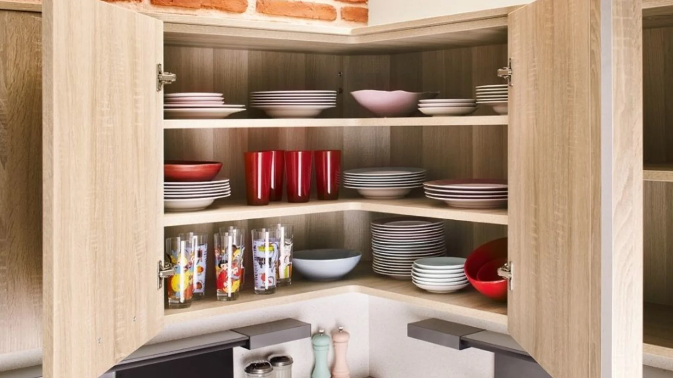 Heb je een hoekkeuken en wil je bovenkastjes? Ook voor bovenkastjes is er een hoekoplossing, namelijk een hoekkast met planken. Zo heb je extra opbergruimte en maak je van jouw keuken één geheel.