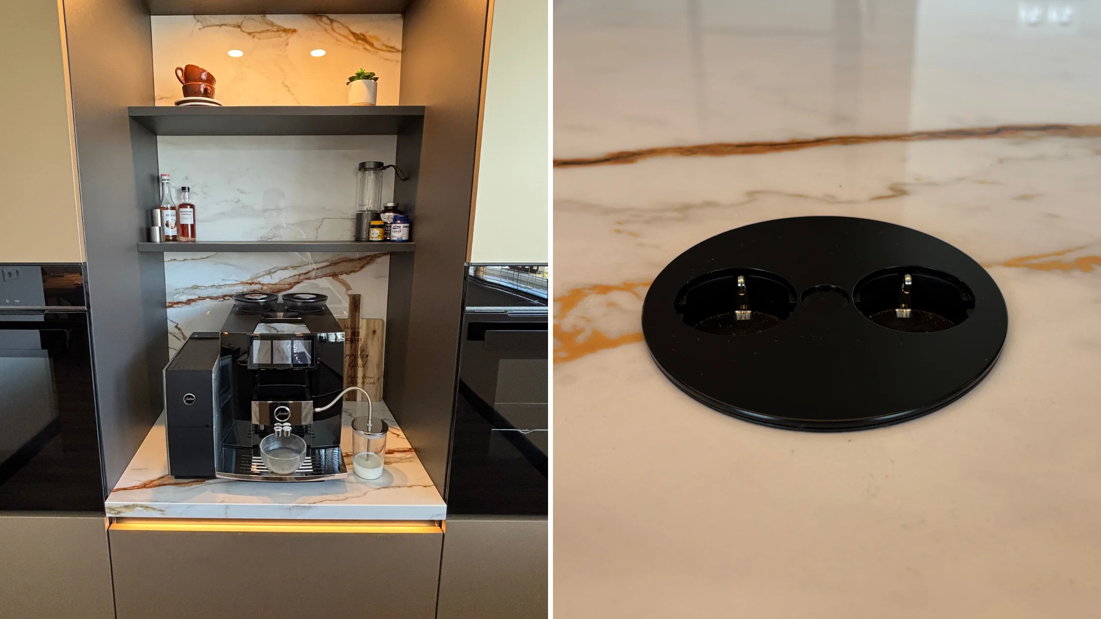 Die zoektocht eindigde bij Keukenwarenhuis.nl. “Toen we daar de Metaal Gouden Nolte NEO keuken zagen, wisten we meteen dat het een perfecte match was,” aldus mevrouw Goud. “De aderen in het werkblad sloten prachtig aan bij het front. Vanaf dat moment hadden we geen twijfel meer.”