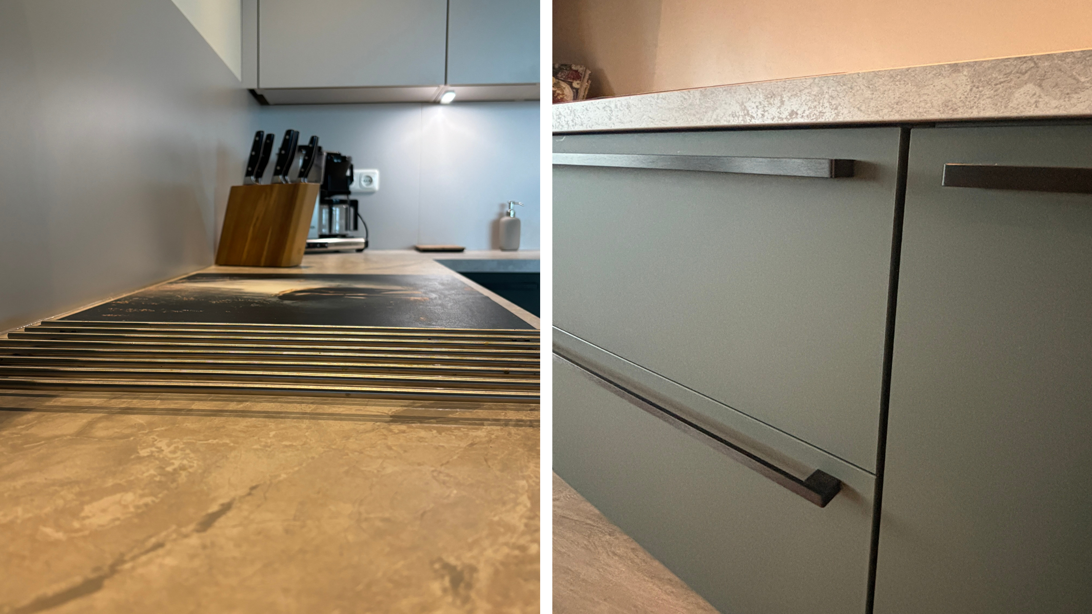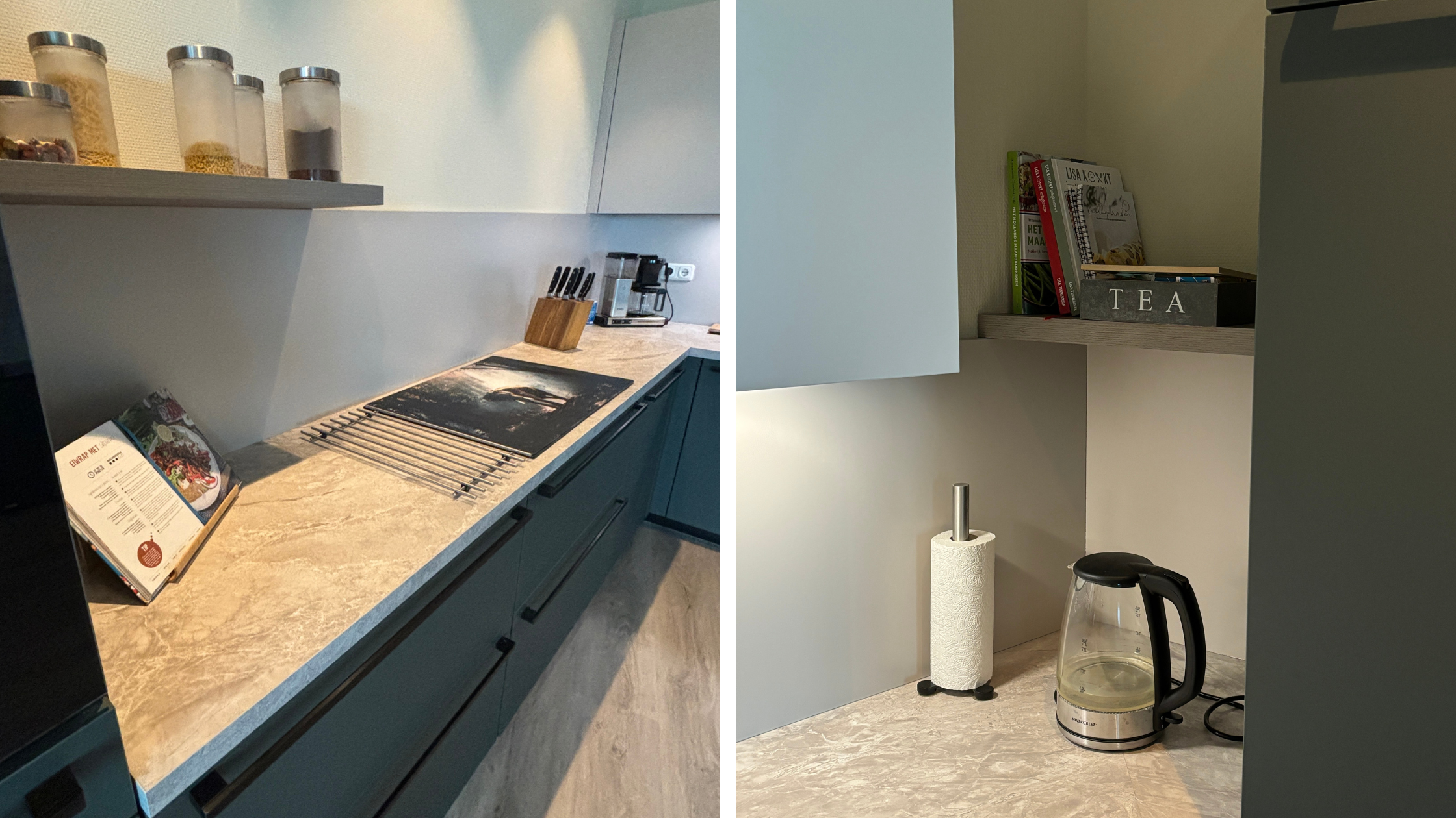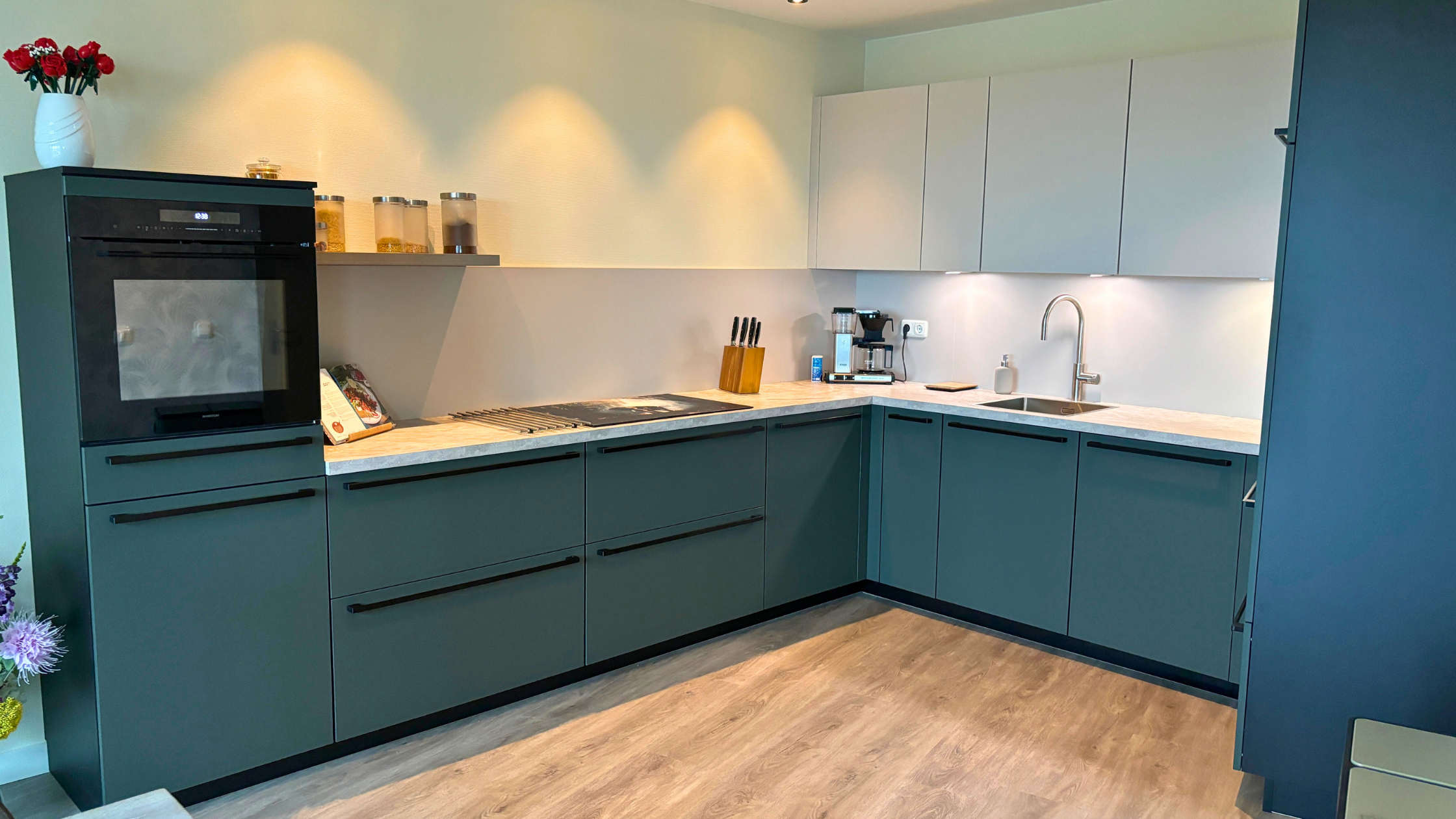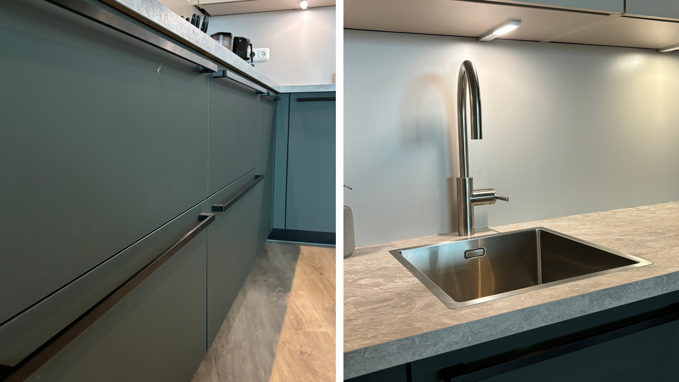 De staat van de nieuwe keuken voldeed daarom niet aan de verwachtingen van Kees en Dory, waardoor ze besloten te investeren in een compleet nieuwe keuken. Nu genieten ze van een prachtige mineraalgroene hoekkeuken gecombineerd met een marmerlook kunststof aanrechtblad die hun appartement een frisse uitstraling geeft. Daarom nemen we deze keer een kijkje in de keuken van Kees en Dory!