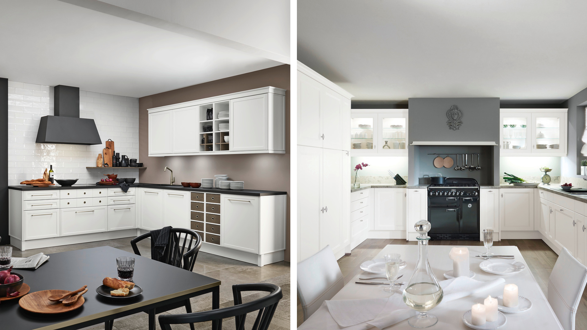 In een landelijke of klassieke stijl krijgt een witte keuken juist die warme, gezellige uitstraling. Denk aan kaderfronten, sierlijke details en vaak een mat witte afwerking.
