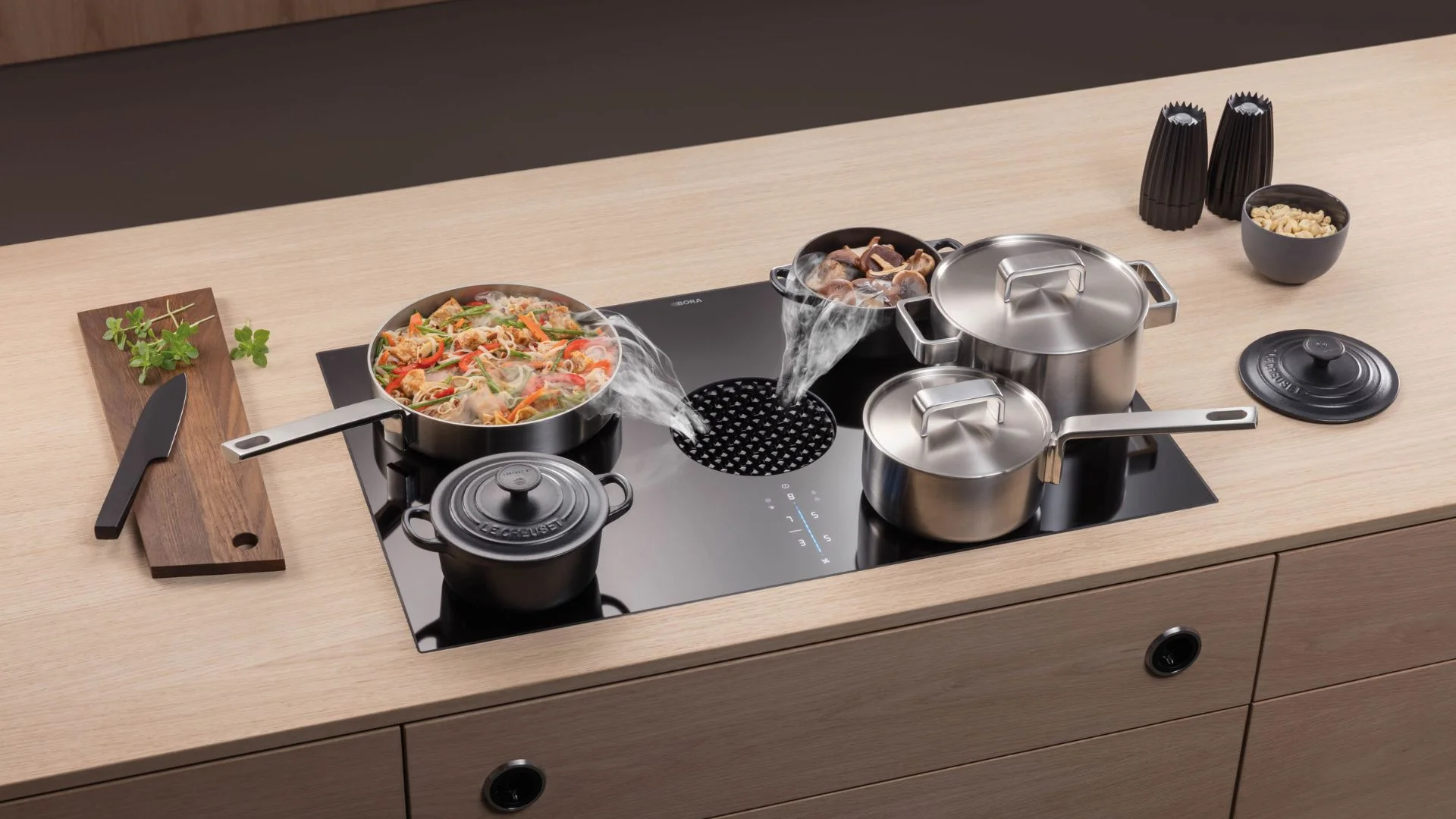 BORA onderscheidt zich door zijn minimalistische design, fluisterstille werking en doordachte functionaliteit, waarmee het koken in open keukens een nieuwe standaard van comfort en elegantie bereikt.