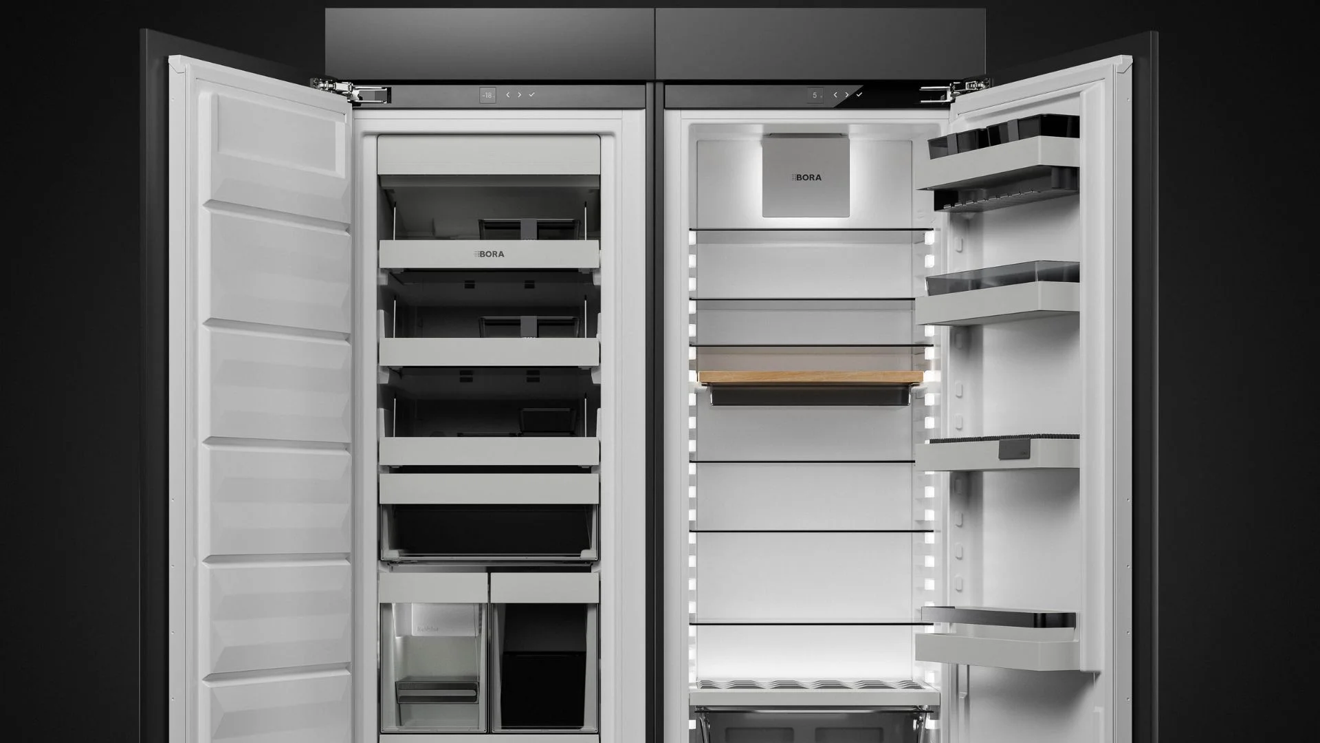 BORA biedt koel- en vriessystemen waarin verfijnde techniek, strak design en slimme frisse luchtbehandeling samenkomen. Denk aan koelapparatuur met intelligente recirculatiekoeling, gescheiden koelcircuits, No Frost-technologie en het BORA Fresh zero-gedeelte voor optimale bewaring.