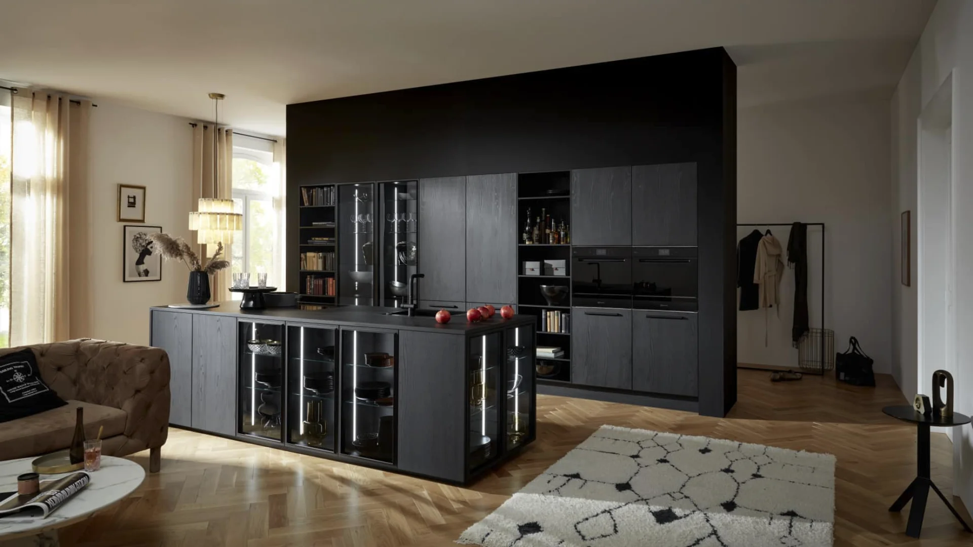 Denk aan fronten van echt fineer, werkbladen van natuursteen of keramiek met exclusieve structuren, volledig geïntegreerde apparatuur en designverlichting die het geheel naar een hoger niveau tilt. Alles is maatwerk, afgestemd op jouw ruimte en manier van leven.