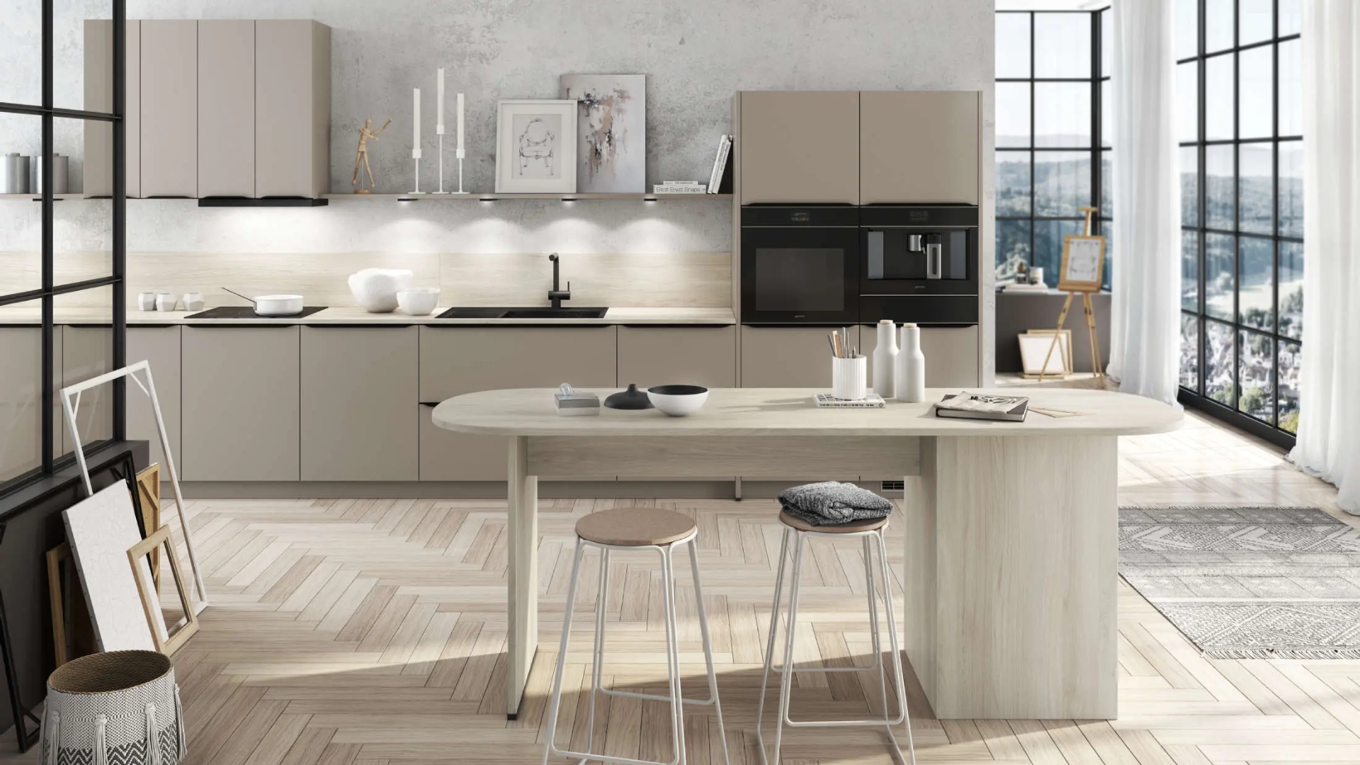 Wat deze keukens uniek maakt, is hun aanpasbaarheid. Ze combineren perfect met hout, wit, staal of natuursteen en passen daardoor in zowel een minimalistische loft als een warme gezinswoning.
