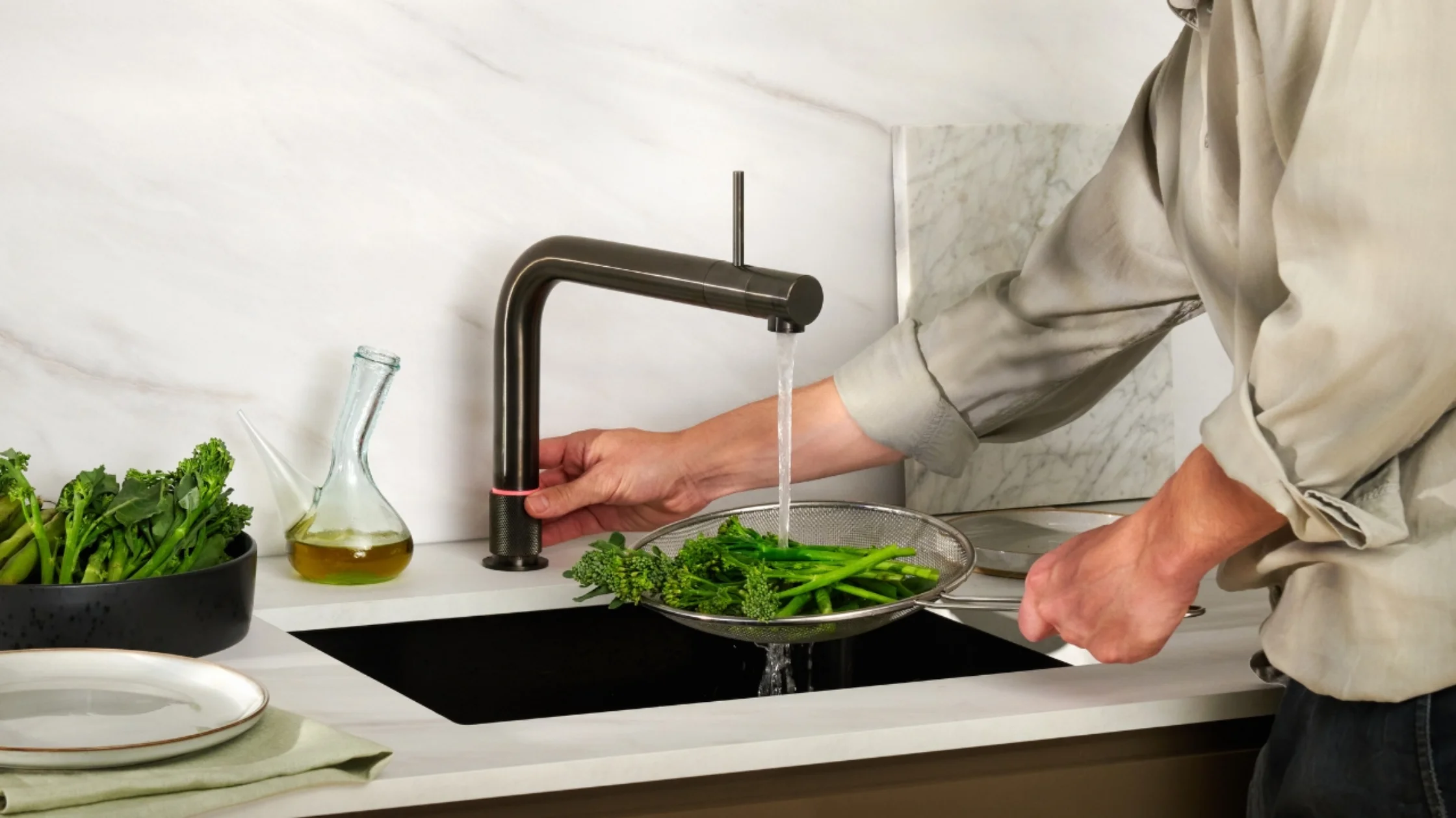 De nieuwe front kraan heeft een uitgesproken design: strak, industrieel en ergonomisch en is verkrijgbaar in zwart en roestvrijstaal. Een kraan die schittert in eenvoud door het minimalistische design. De kraan kan gecombineerd worden met ieder Quooker-reservoir.