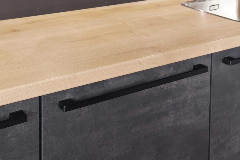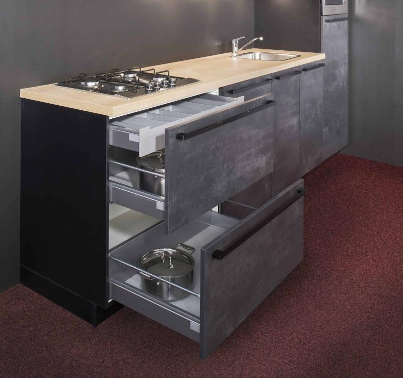 Actie Keuken Lola 135 is een mooie betonlook keuken, direct uit voorraad leverbaar, deze deurfronten hebben een zeer natuurlijke beton uitstraling. Deze keuken is voorzien van zwarte rvs grepen, met een extra brede ladenkast met extra binnenlade en extra hoge kasten voor extra opbergruimte. Deze topper is volledig naar eigen wens aan te passen tegen meer- of minderprijs en is binnenkort in ieder formaat direct uit voorraad leverbaar. Lengte 300 cm.