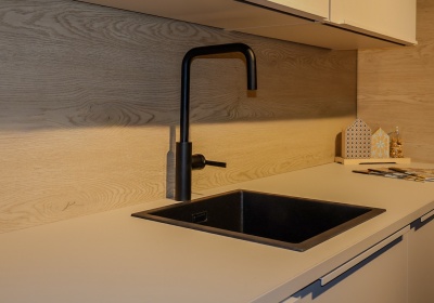 Matzwarte spoelbak en kraan