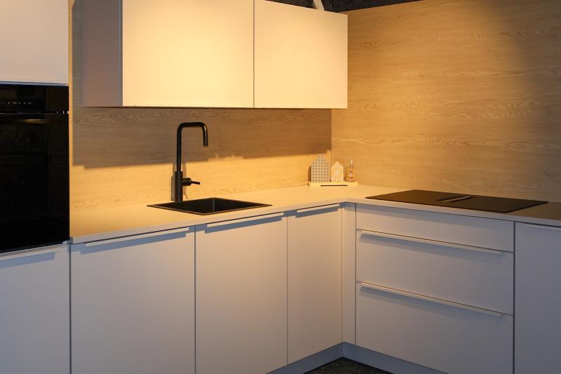 Een matzwarte spoelbak en kraan geven je keuken een moderne, stijlvolle uitstraling met een stoer randje. De matte afwerking is tijdloos én onderhoudsvriendelijk, en vormt een krachtig contrast in zowel lichte als donkere keukens.
