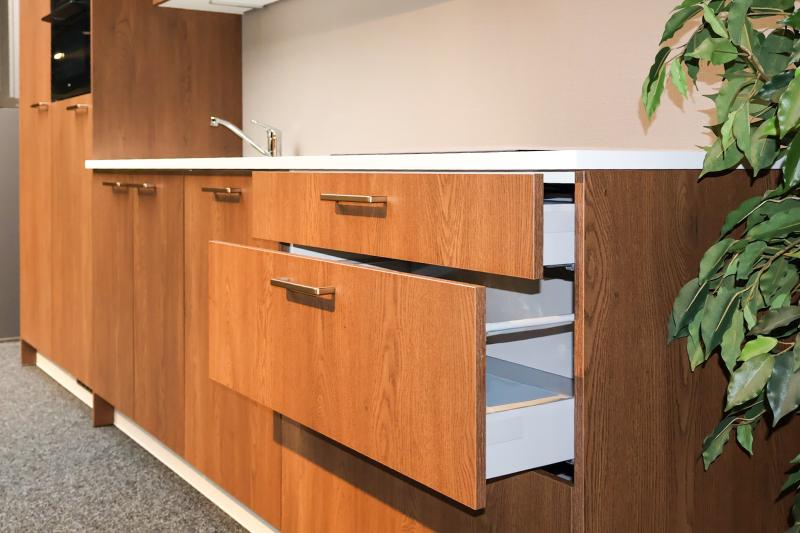 Brede ladekasten bieden extra veel opbergruimte en overzicht. Dankzij de ruime indeling berg je gemakkelijk grote pannen, voorraadpotten of keukentools op. Alles is in één beweging bereikbaar, wat koken nóg prettiger maakt.