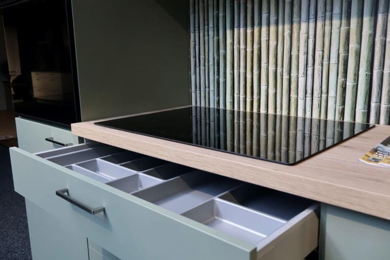 Jubileum Keukendeal 99. Compleet ontzorgde saliegroene rechte keuken. Inclusief inmeten, leveren en montage!