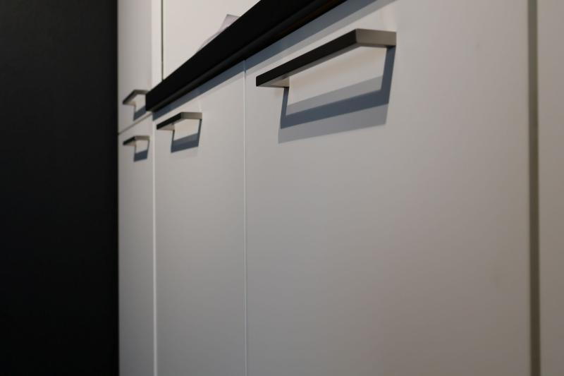 Kitchenette Kendra 149. Superhandige kitchenette in het soft touch mat wit, model ECO Florenz, deze deuren voelen fluweelzacht aan! Deze keuken is in ieder gewenst formaat direct uit voorraad leverbaar. Model Kendra is voorzien van een besteklade, en ruime keukenkasten voor veel opbergruimte. 270 cm lang.