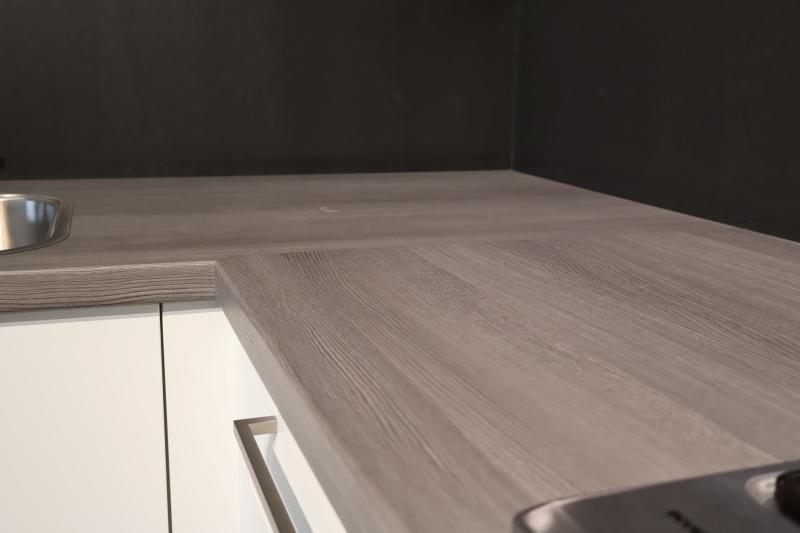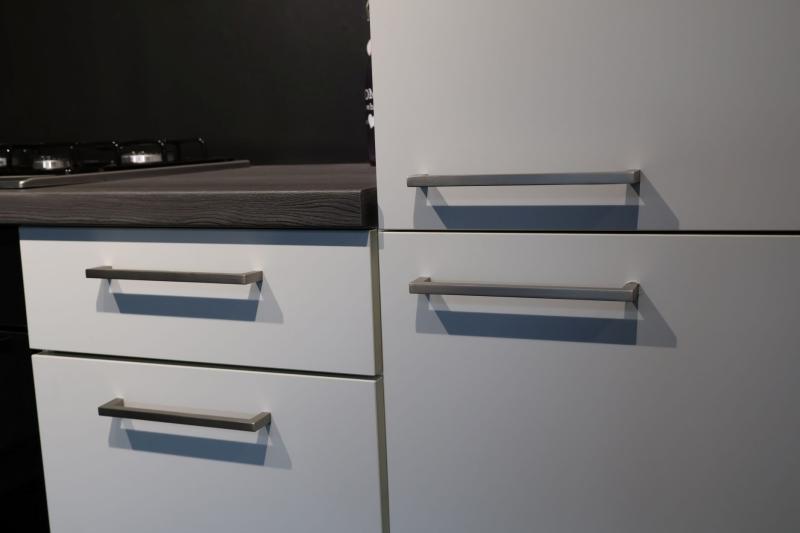 Outlet Keuken Gaby 136 is een gave hoekkeuken in het soft-touch mat wit, model ECO Florenz, met brede handgrepen. Deze deuren voelen fluweelzacht aan! Deze keuken is in ieder gewenst formaat direct uit voorraad leverbaar.