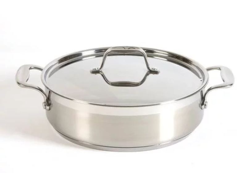 Mooie Tri Ply HapjespanBraadpan van 24 cm.Tri-Ply pannen zijn gemaakt voor de liefhebber, Tri-Ply pannen, de naam zegt het al, bestaan uit drie lagen metalen welke hierdoor de warmte van de kookplaat ongelofelijk goed geleiden.