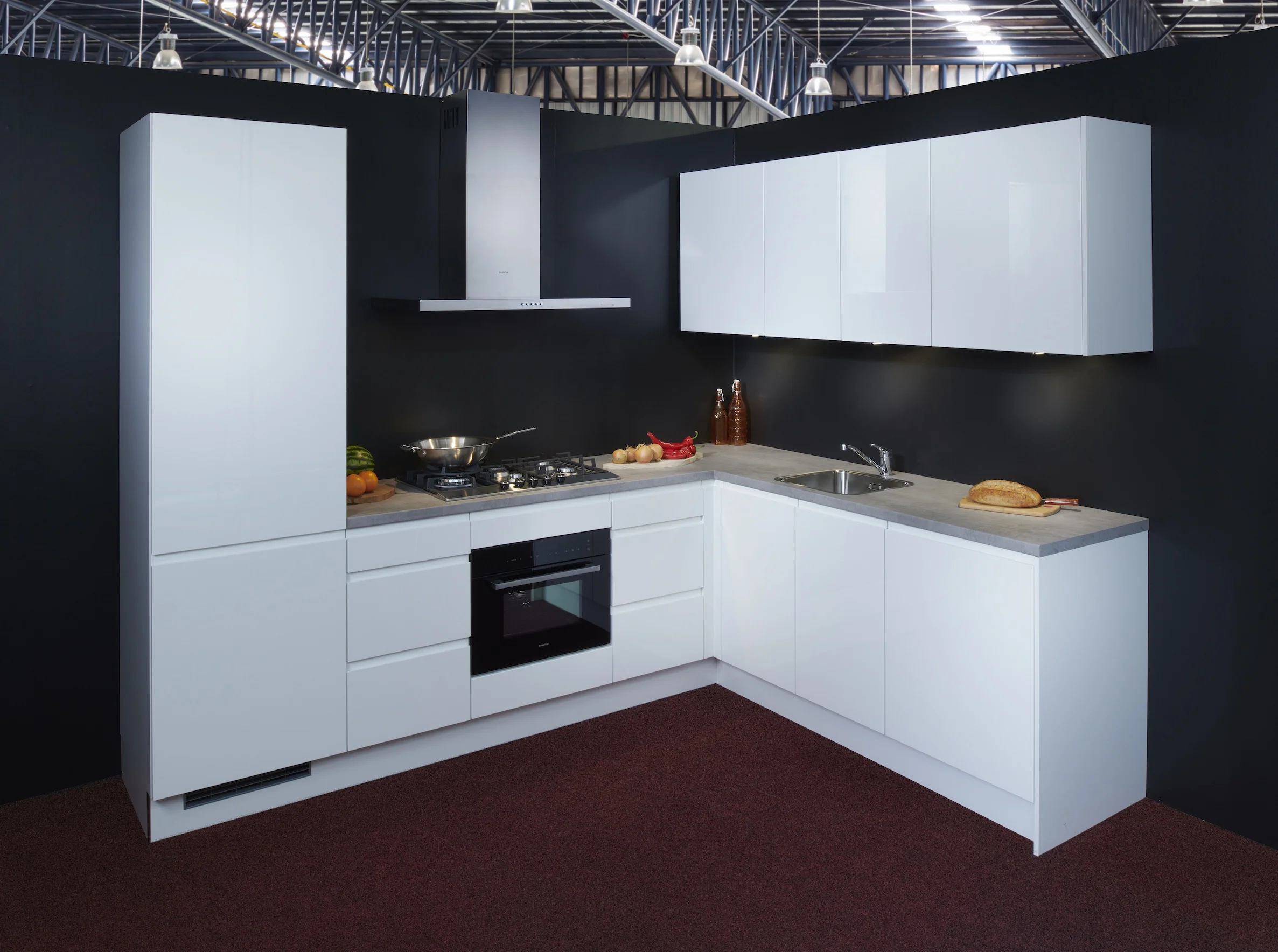 Hoe doen we dat precies? Keukenwarenhuis.nl heeft vele ‘voetbalvelden’ vol met diverse maten en soorten kasten. Deze kasten worden samengesteld tot uw gewenste keuken. Niet alleen rechte keukens maar ook alle vormen van hoekkeukens, van fluweelzachte soft white tot kaderkeukens tot mat zwarte keukens, groene keukens, betonlook keukens en hoogglans gelakte keukens, we hebben het allemaal. Uiteraard kunnen ook het aanrechtblad en de apparatuur worden meegeleverd.