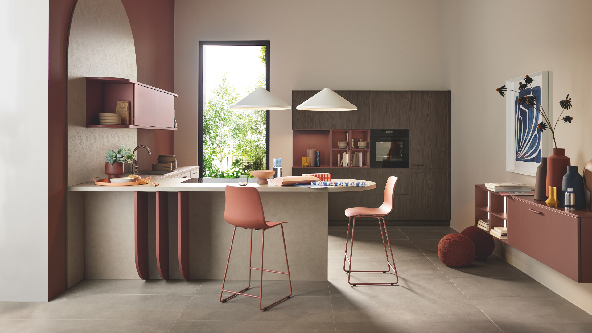 Strakke lijnen maken plaats voor zachte, vloeiende vormen. Denk aan afgeronde hoeken, gebogen kasten en open schapindelingen die zorgen voor een uitnodigende uitstraling.