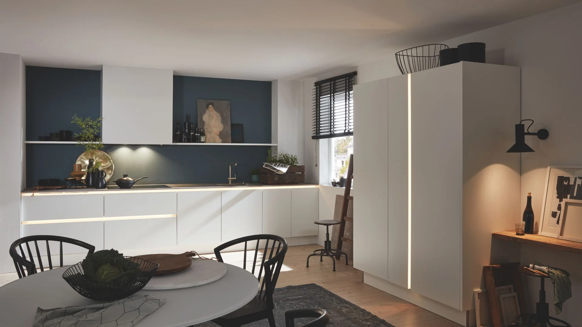 Kies voor natuurlijke materialen zoals hout, keramiek of betonlook voor een stijlvolle en tijdloze basis. Werk de keuken af met sfeervolle verlichting en accessoires die jouw stijl benadrukken.