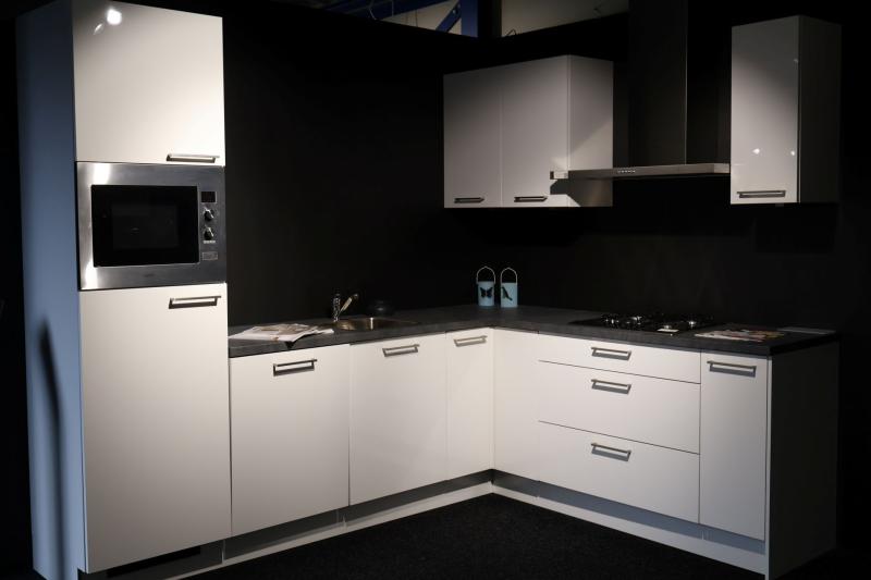 Actie Keuken Corrie 127 is een mooie glanzende hoekkeuken in hoogglans wit uitgevoerd, model ECO Lyon. De keuken is supercompleet met een handige brede ladekast en een slimme carrouselkast, voor extra bergruimte. Deze super degelijke keuken is in ieder gewenst formaat aan te passen en is direct uit voorraad leverbaar! Linkerzijde: 270 cm. Rechterzijde 210 cm.