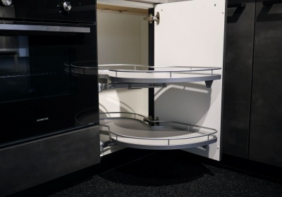 Een LeMans hoekkast maakt slim gebruik van de hoekruimte door middel van uittrekbare en draaibare plateaus die volledig naar buiten komen. Hierdoor heb je makkelijk toegang tot pannen en keukengerei zonder diep in de kast te hoeven reiken.