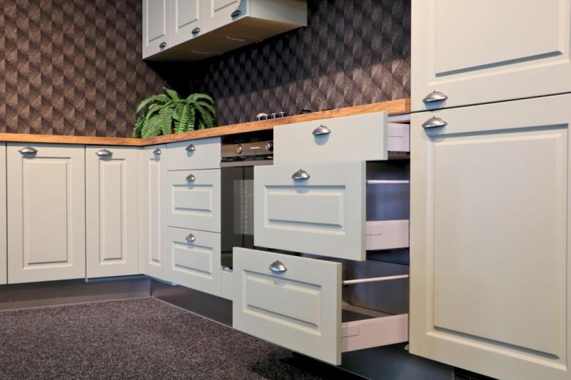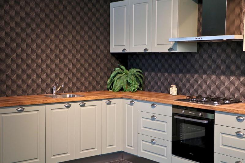 Jubileum Keukendeal 03 Groen Dordrecht. Groene landelijke hoekkeuken met kaderfronten. Deze complete en ontzorgde Groene landelijke hoekkeuken is inclusief inmeten, leveren en montage.