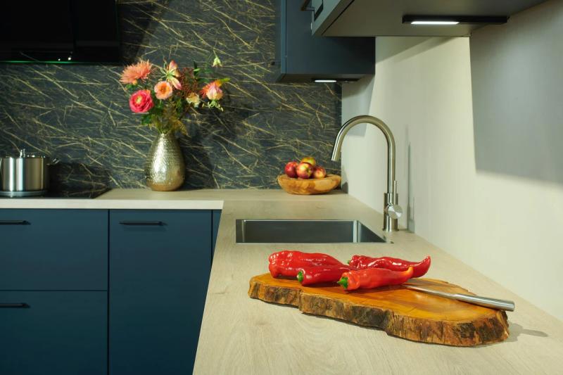 Een houten werkblad brengt warmte en karakter in de keuken. Het natuurlijke materiaal zorgt voor een gezellige, huiselijke sfeer en past perfect bij zowel moderne als landelijke keukens. Met de juiste verzorging blijft hout jarenlang mooi en functioneel.