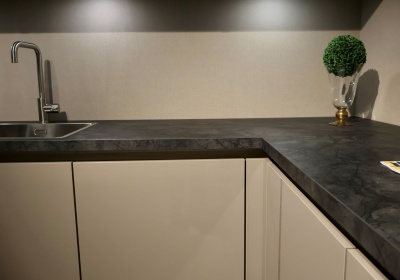 Een marmerlook werkblad geeft je keuken een elegante en luxueuze uitstraling, zonder de kwetsbaarheid van echt marmer. Het oppervlak is sterk, onderhoudsvriendelijk en verkrijgbaar in diverse kleurschakeringen met kenmerkende aders. Perfect voor wie stijl en functionaliteit wil combineren.