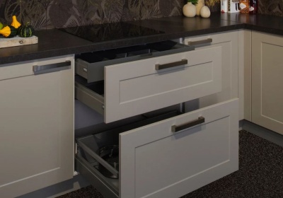 Brede ladekasten met binnenlade bieden extra opbergruimte zonder in te leveren op overzicht. De verborgen binnenlade is ideaal voor bestek of keukentools, terwijl de diepe lade daaronder ruimte biedt voor grotere spullen. Slim, strak en bijzonder functioneel.