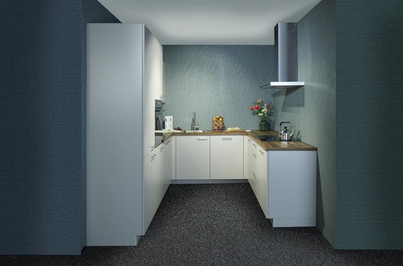 Jubileum Keukendeal 64. Compleet ontzorgde zand kleurige u-keuken. Inclusief inmeten, leveren en montage!