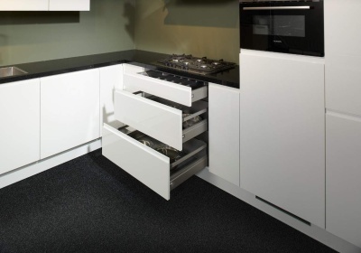 Deze greeploze keuken is in vrijwel iedere opstelling ook direct uit voorraad leverbaar !!!