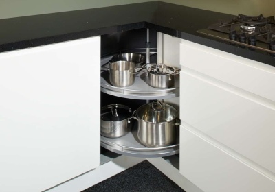Een carrouselkast maakt efficiënt gebruik van hoeken die anders lastig te bereiken zijn. Dankzij het draai-mechanisme kun je de hele inhoud eenvoudig naar voren halen, zonder te bukken of te graaien. Praktisch én ruimtebesparend.