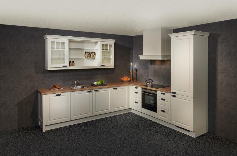 Met o.a. landelijke bovenkasten met glas, nostaglische details en luxe ladekasten. Leverbaar in 7 verschillende kleuren voor dezelfde prijs.