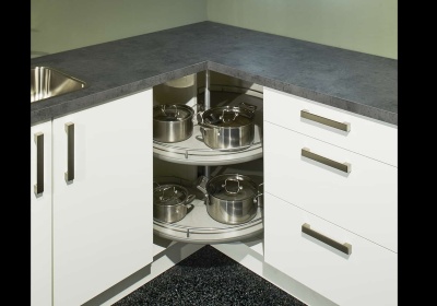 Een carrouselkast maakt efficiënt gebruik van hoeken die anders lastig te bereiken zijn. Dankzij het draai-mechanisme kun je de hele inhoud eenvoudig naar voren halen, zonder te bukken of te graaien. Praktisch én ruimtebesparend.