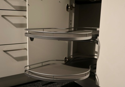 Een LeMans hoekkast maakt slim gebruik van de hoekruimte door middel van uittrekbare en draaibare plateaus die volledig naar buiten komen. Hierdoor heb je makkelijk toegang tot pannen en keukengerei zonder diep in de kast te hoeven reiken.