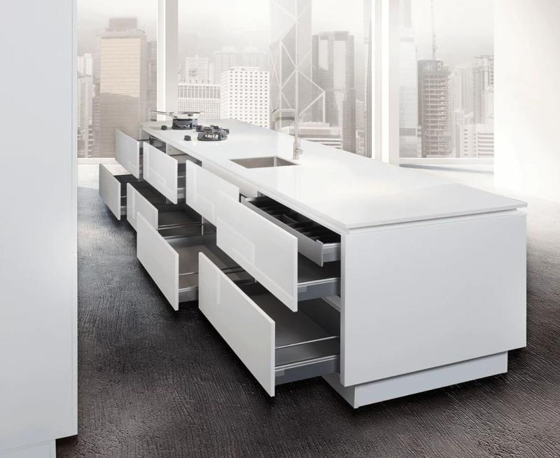 Brede ladekasten met binnenlade bieden extra opbergruimte zonder in te leveren op overzicht. De verborgen binnenlade is ideaal voor bestek of keukentools, terwijl de diepe lade daaronder ruimte biedt voor grotere spullen. Slim, strak en bijzonder functioneel.
