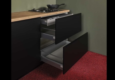 Brede ladekasten met binnenlade bieden extra opbergruimte zonder in te leveren op overzicht. De verborgen binnenlade is ideaal voor bestek of keukentools, terwijl de diepe lade daaronder ruimte biedt voor grotere spullen. Slim, strak en bijzonder functioneel.