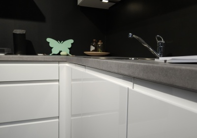 Outlet Keuken Sem 127 is een uniek mooie greeploze, witte hoogglans hoekkeuken, model Nolte Alpha Lack. Prachtige hoekkeuken met luxe ladekasten voor veel handige opbergruimte. Deze luxe greeploze keuken is volledig naar wens aan te passen en in ieder formaat direct uit voorraad leverbaar. Schitterende diepe glansgraad. Linkerzijde: ca. 275 cm. Rechterzijde: ca. 217 cm.