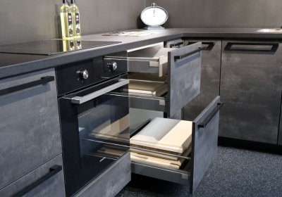 Luxe ladekasten met binnenlade bieden extra comfort en overzicht. De binnenlade is subtiel weggewerkt achter het front en perfect voor kleinere spullen, terwijl de hoofdruimte volop plaats biedt voor grote keukengerei. Stijlvol, slim en functioneel in één.