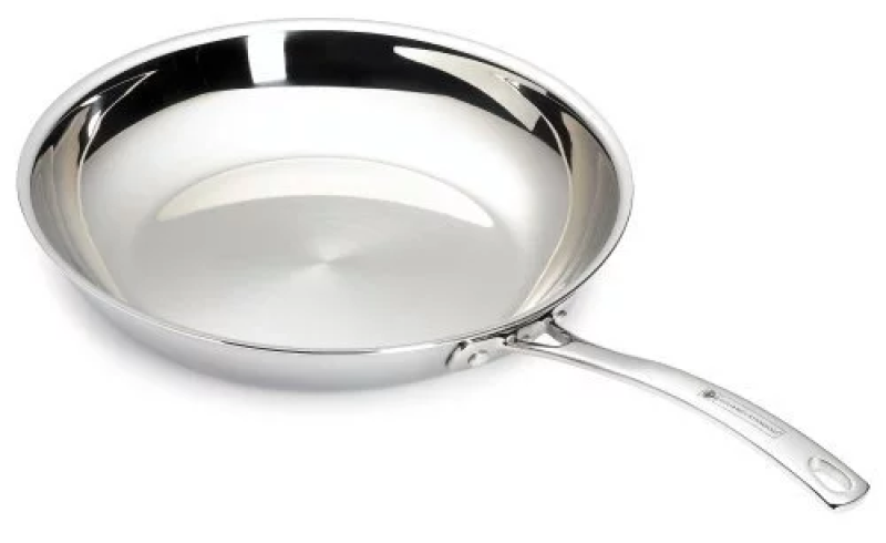 De Tri-Ply pannen geleiden dermate goed dat de pan gelijkmatig warm wordt, en niet alleen de bodem, juist ook de zijkanten van de Tri-Ply pan. Hierdoor hoeft u veel minder te roeren en koekt het veel minder snel aan.