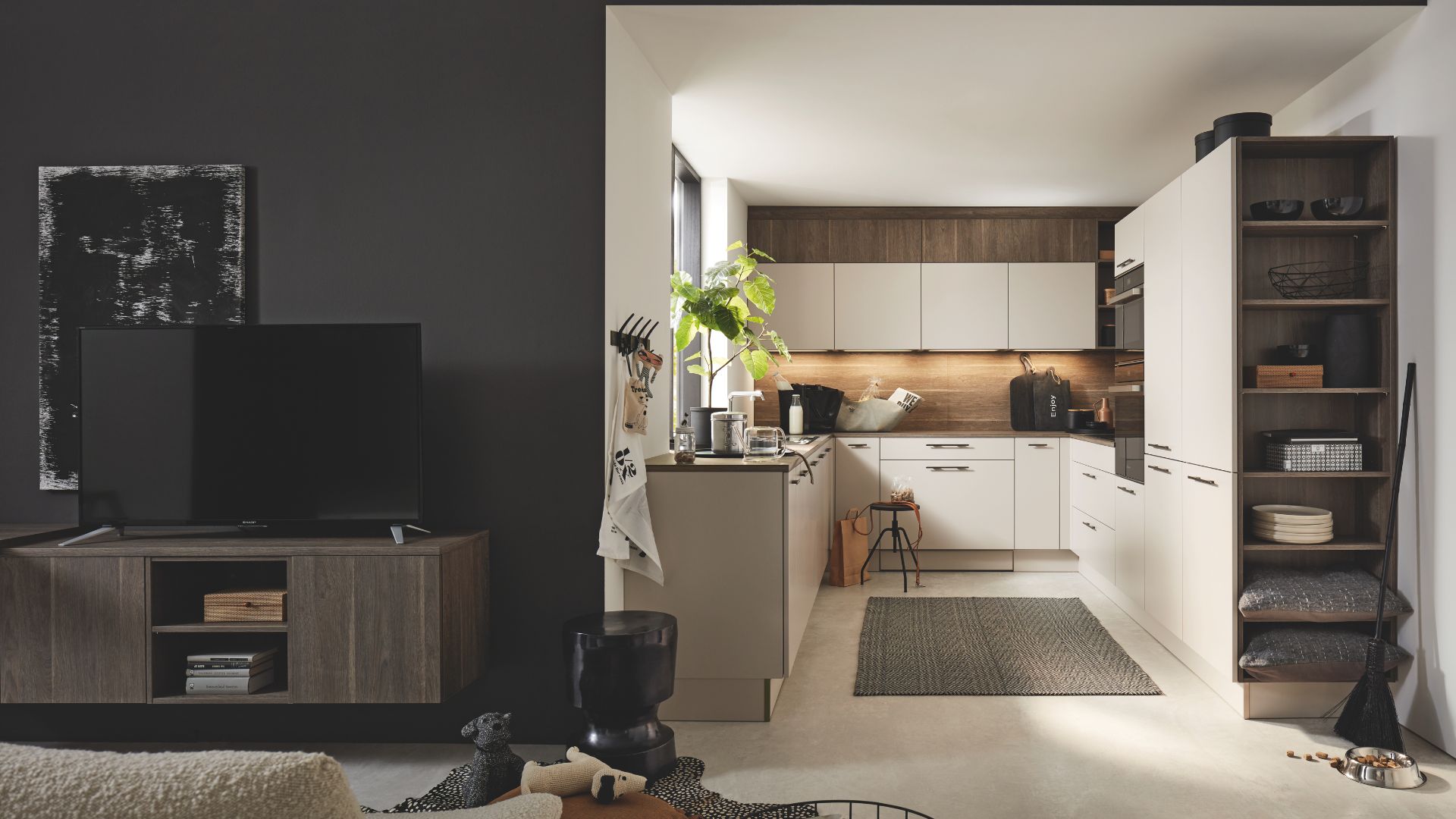 Kies bijvoorbeeld voor een moderne witte U-keuken met houtaccenten en een keramiek blad. Of combineer matte fronten in taupe of antraciet met een licht werkblad voor contrast en rust.